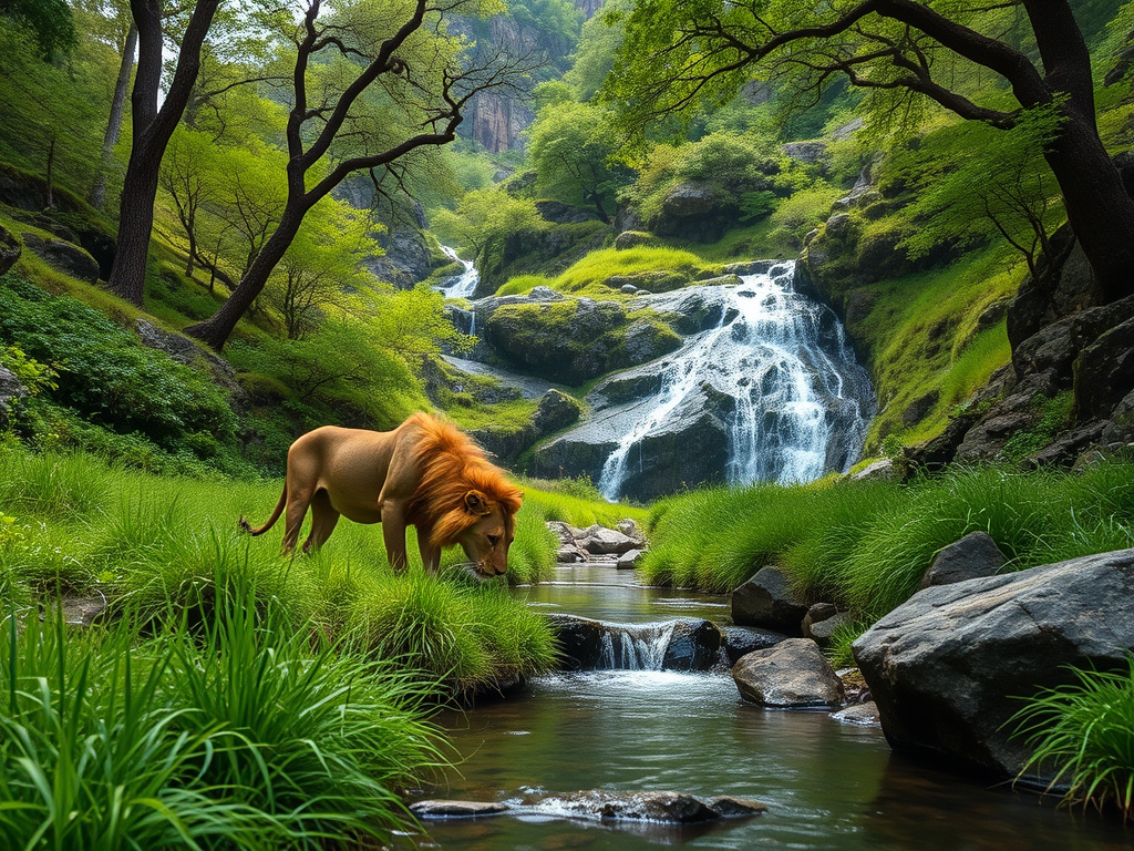 naked skin – as you walk along a flowing river. Hear the waterfall gushing on