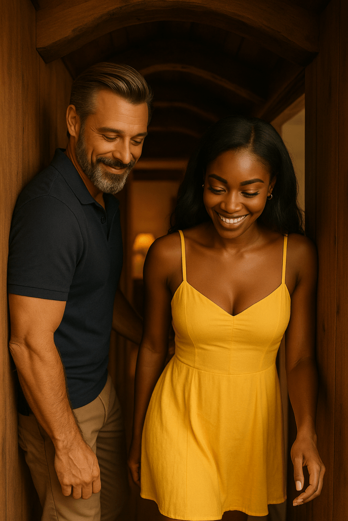 Their eyes held longer than they should have. The silence thickened, filled only by the hum of the house and the faint creak of the wooden floor beneath their feet.