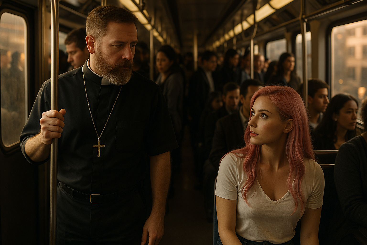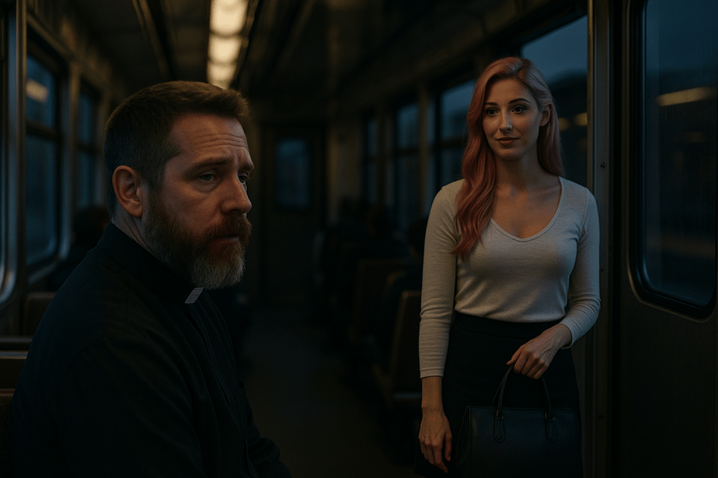 The platform was as it always was at four: a drenched marketplace of faces, a compressed parcel of the city’s lives. He entered the train the way a man enters a chapel—measured, careful, eyes lowered by habit. Standing, he took the angle of a man who expects to stand. “Father Warren,” someone said gently, and a young man with curly hair unfolded from his seat like a courtesy. “Please.”
